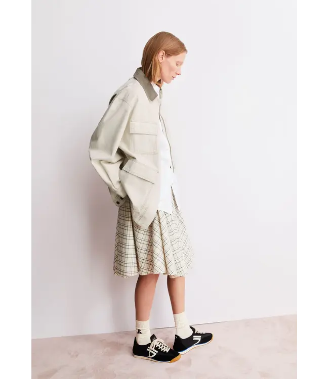The WORKWEAR CANVAS JACKET is made from heavy woven fabric and has a wide cut. The firm, breathable quality of 100% organic cotton underlines the functional character. A shirt collar and patch pockets define the classic workwear style, making the design robust and suitable for everyday wear.
