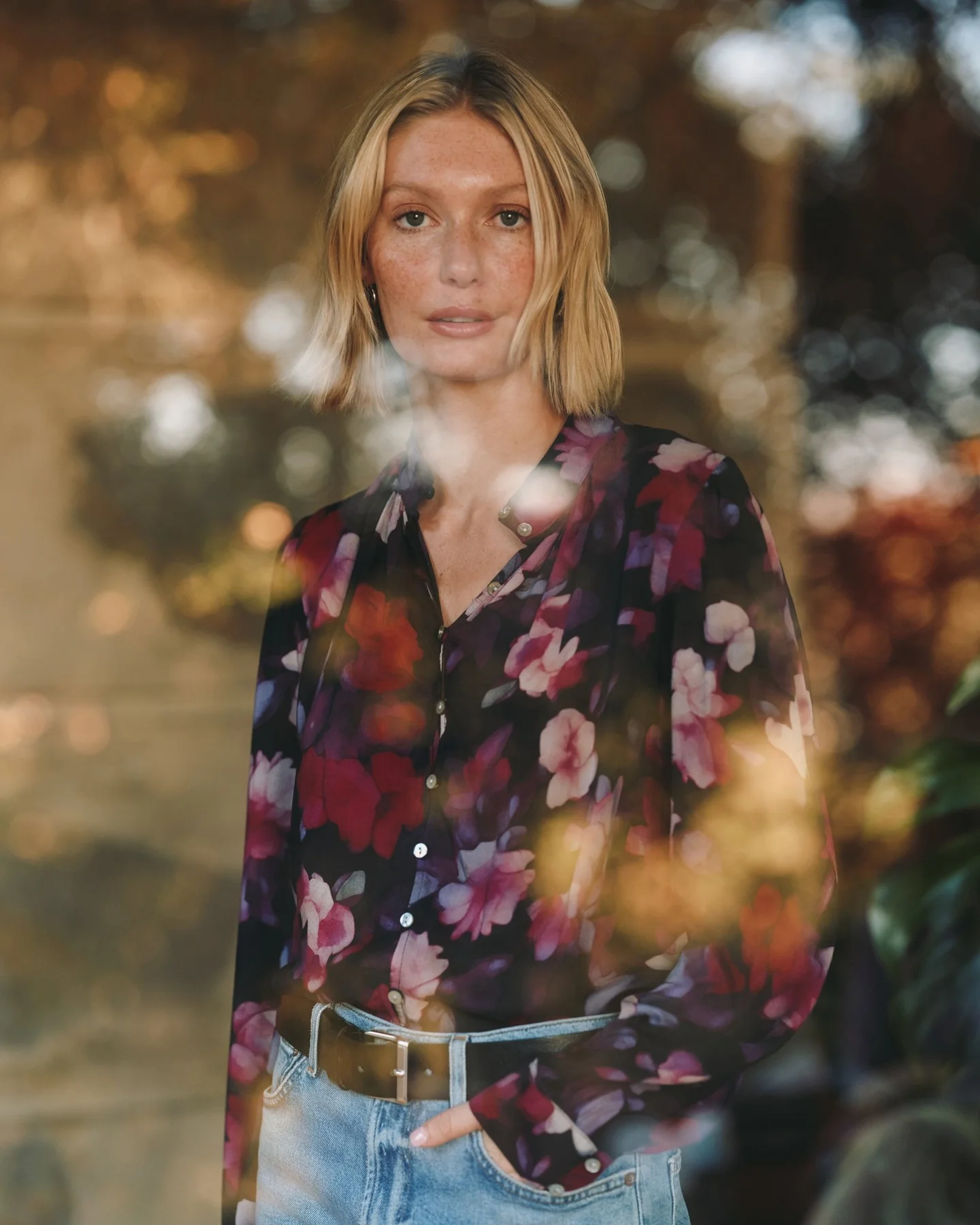 Create an accountRomantic yet effortless, the Shirred Button Up Blouse in it's dark floral print feels instantly right for fall, with a draped fit that moves effortlessly from day to evening.