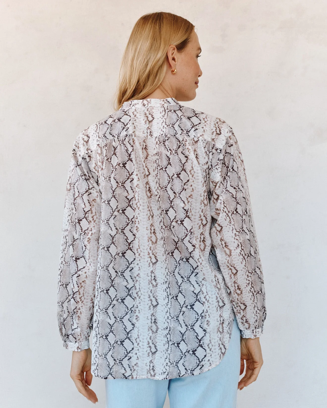 Create an accountThe Shirred Mandarin Collar Shirt is a relaxed button-down with soft drape and a fresh, unexpected print.