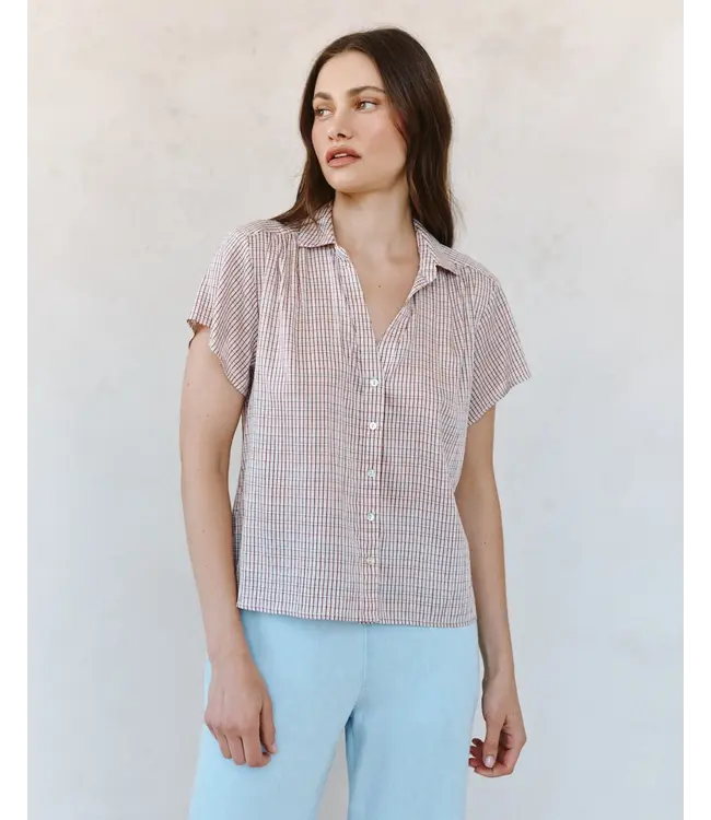 The Shirred Short Sleeve Shirt is a breezy, relaxed button-down designed for sunlit spring days.