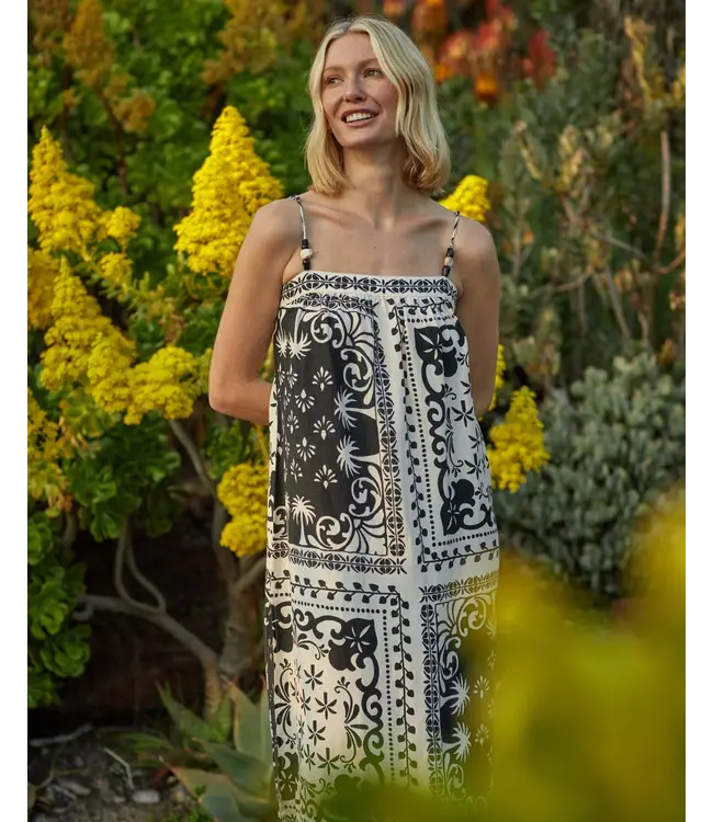 Sun-drenched days call for something effortless. Delicate spaghetti straps finished with beaded detail frame a square neckline, falling into a relaxed midi silhouette with a side slit that catches every breeze. Soft, textural, and made for the kind of days that linger.