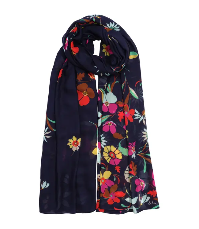 The Falling Flowers Wrap features an elegant ombré of cascading blooms, creating a soft, romantic effect. At one end the flowers appear lush and abundant, gradually scattering as they drift down the length of the wrap