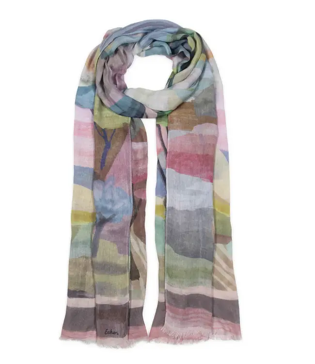 From afar, this wrap appears to be an abstract design, but up close, a richly detailed landscape emerges, rendered in striking sun-drenched color.