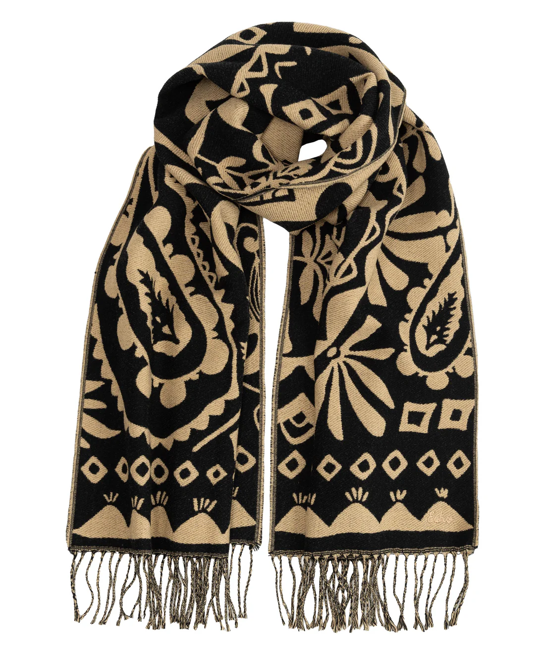 Create an accountA refined jacquard scarf featuring an intricate paisley pattern inspired by the natural elegance of Central Park.