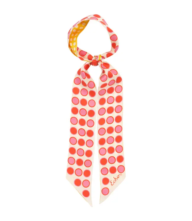 The Spot and Dot Silk Ribbon Scarf reinterprets a vintage Echo dot from the archive. One side showcases the original dot pattern, while the reverse presents a contrasting variation, creating a playful, double-sided accessory with a nod to heritage design.