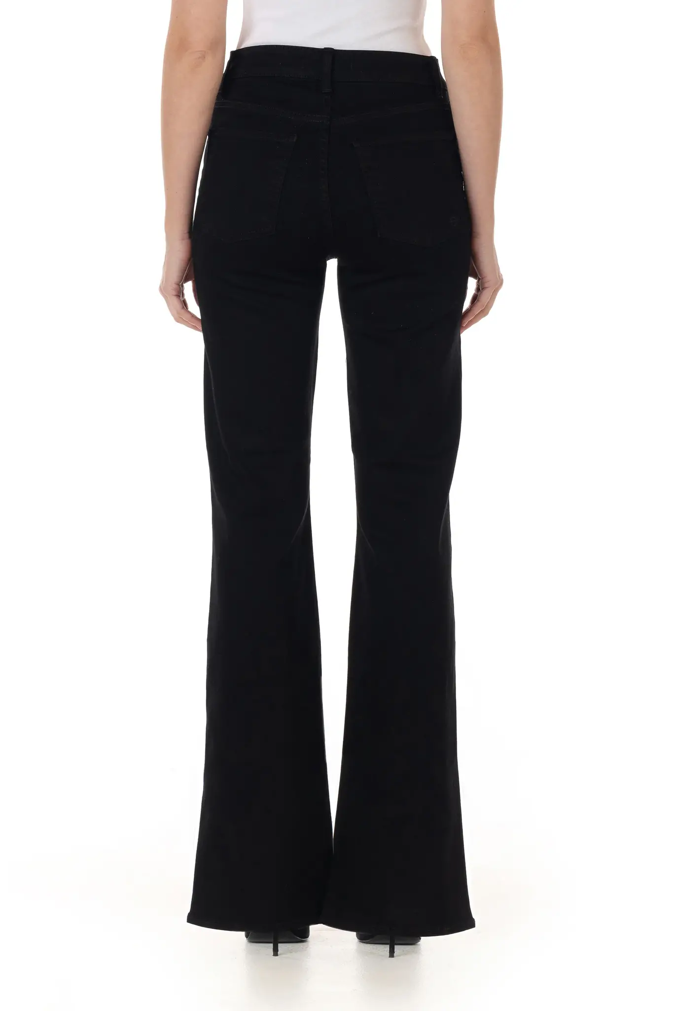 Create an accountAll of the flare and fit for the season wrapped up in one great looking pair of jeans. The fit is a trouser so slim at the top down to a flare at the ankle. Classic, refined and super versatile, this clean dark black wash is going to stand the test of time. Beautiful matte black hardware give this classic an upgrade. Made with Excel denim this will hug and move with your body.