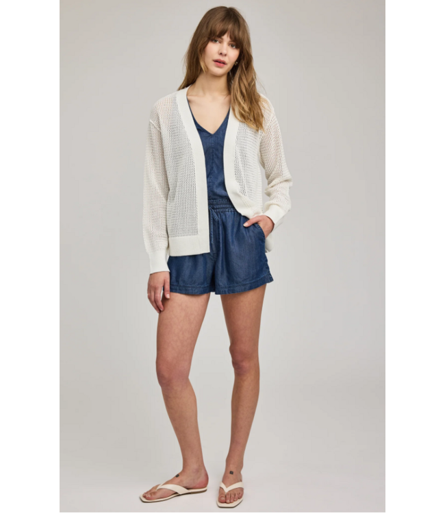 The Drew Cardigan is made of a cotton yarn with an open knit pattern. The effortless silhouette is perfect for warm weather layering.