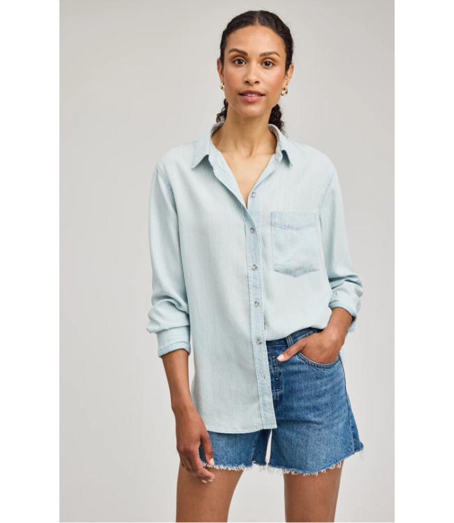 The Ozzy button down shirt is made of Tencel fabric that has been specially washed to achieve a dimensional look and soft feel. Wear it as is or worn open as a layering piece. Complete the look with the Tessa short or Camille pant.