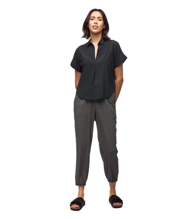 A lightweight short-sleeved top with v-neck and split shirt collar. If you love our Frivol dress, this t-shirt design is a must-have for your outdoor activities season.