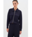Jersey sweater in dark blue with zipper, chest pockets, collar, and long sleeves. The sweater has a regular fit. The model is 176 cm tall and is wearing a size 36/S.