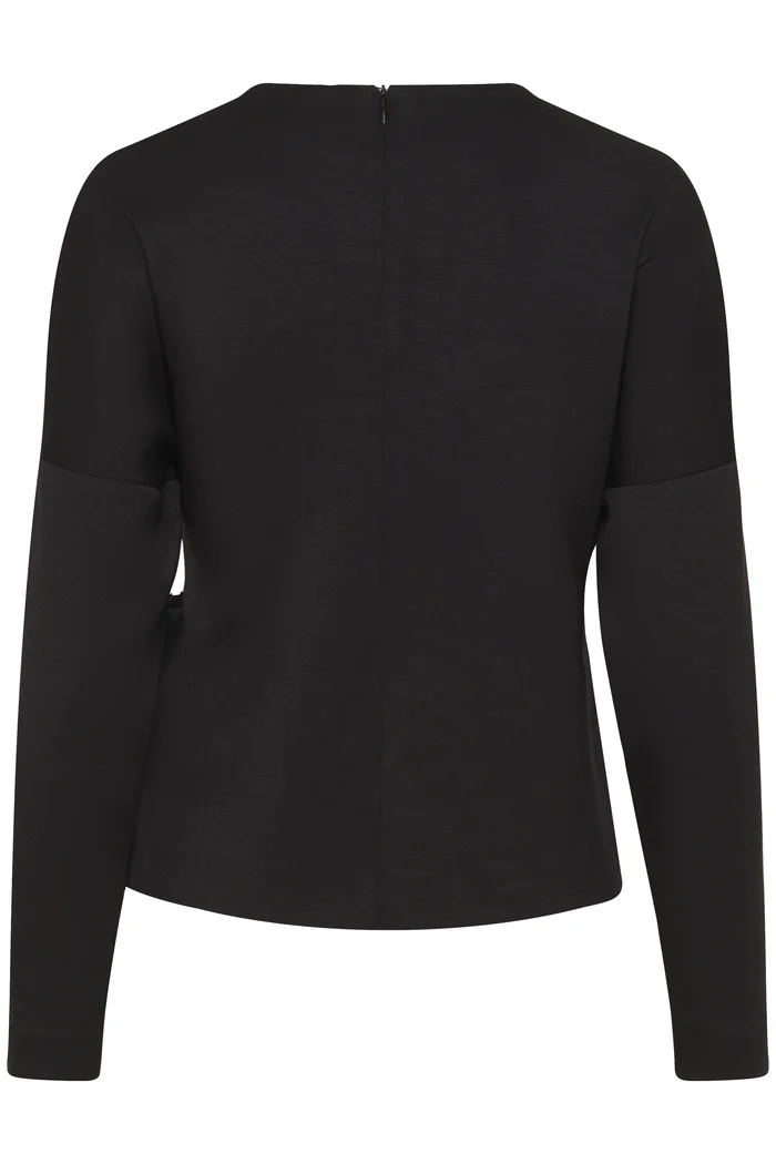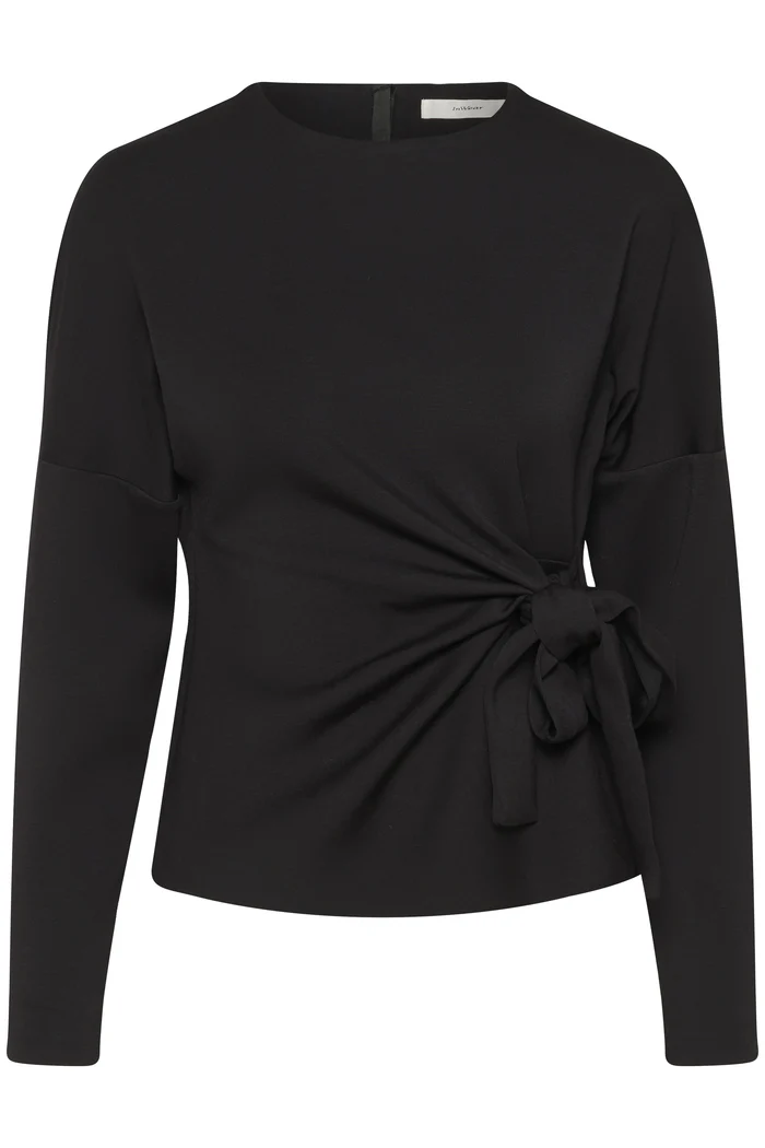 Create an accountThe InWear Tri Knot Side Top is a clean, contemporary piece in classic black. Designed with a crew neckline and full-length sleeves, the standout feature is the gathered knot detail that drapes to the side, drawing in the waist with subtle structure. The dropped shoulders and smooth jersey feel give it a relaxed edge, making this a versatile layer for work or weekends.