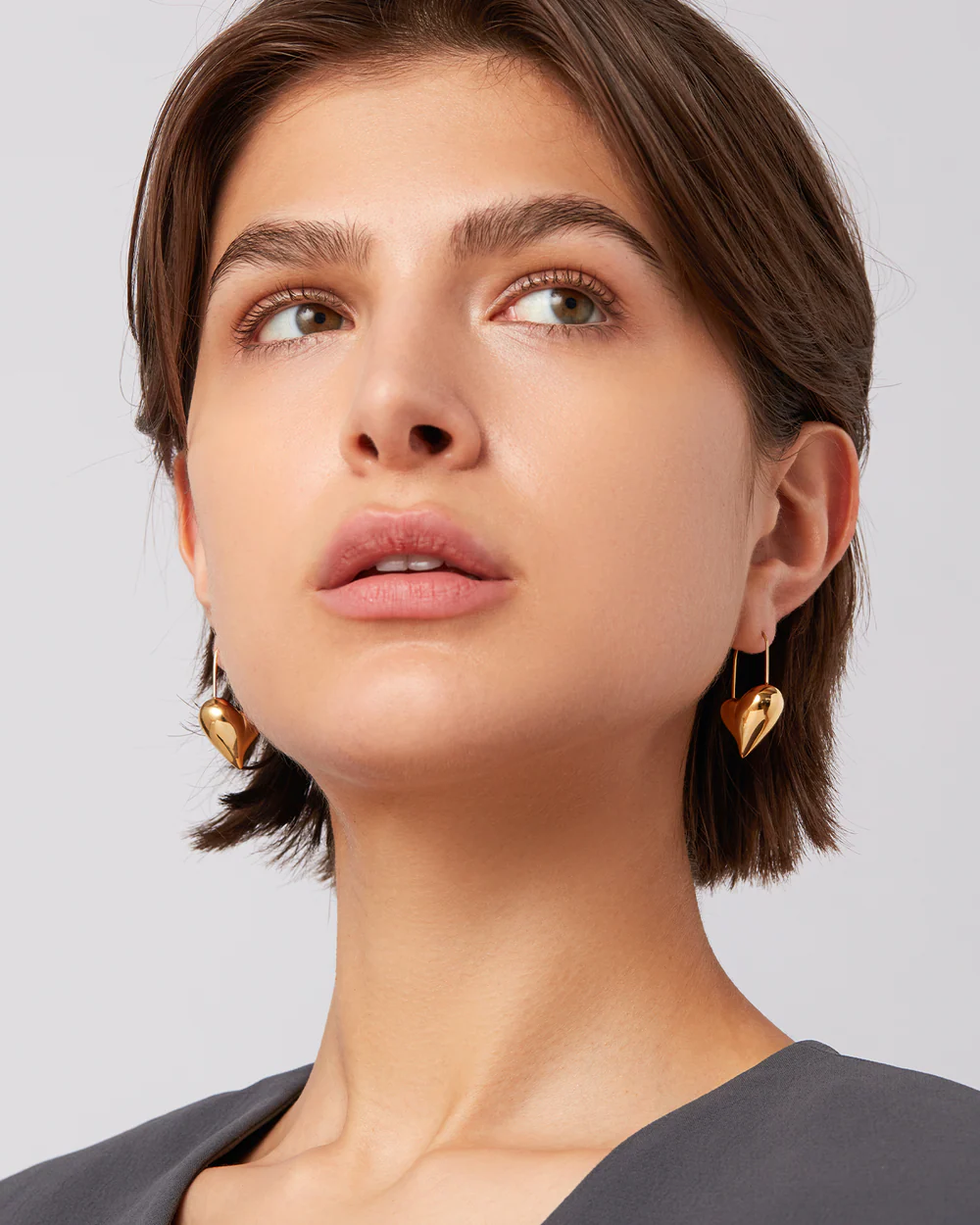 Create an accountA playful puffed heart is the focal point of this mobile-inspired design. These hoop earrings are water-resistant and finished in high-polish 14k gold.
