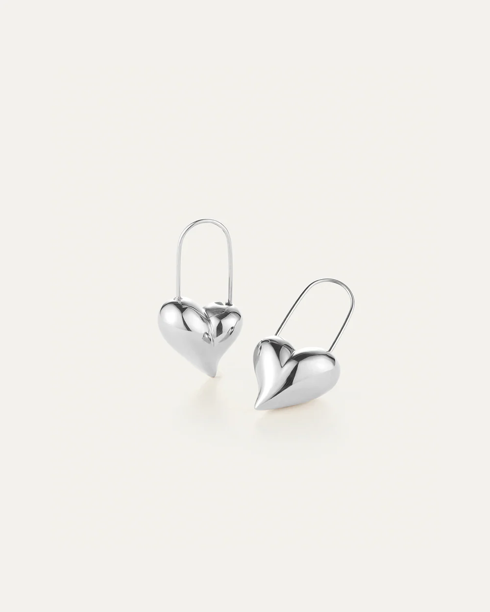 Create an accountA playful puffed heart is the focal point of this mobile-inspired design. These hoop earrings are water-resistant and finished in high-polish silver.
