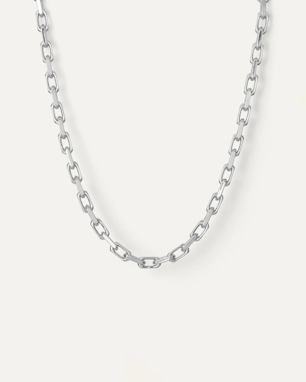Create an accountCrisp, faceted links secure around the neck with a hidden egret closure. Finished in high-polish silver.