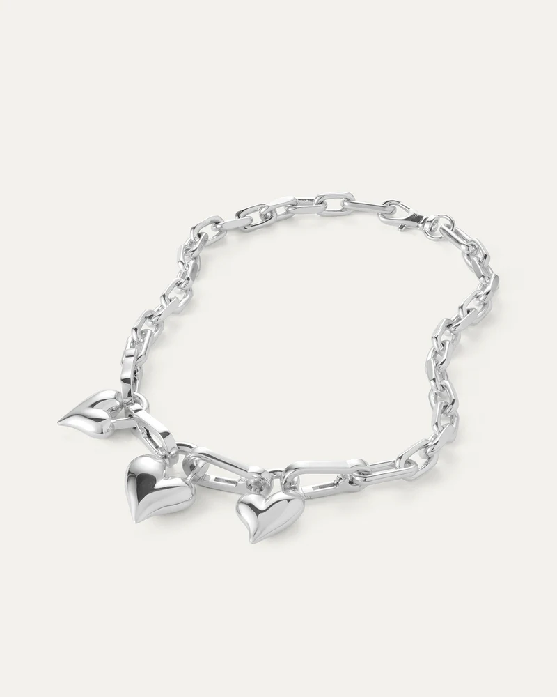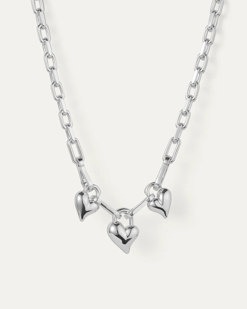 Create an accountThree removable hearts are hooked onto crisp, faceted links. Play around with this chain to achieve different looks: remove one, two or all three hearts using the mini carabiner clasps, or split the chain in half to use it as a bag charm or keychain. Finished in high-polish silver.