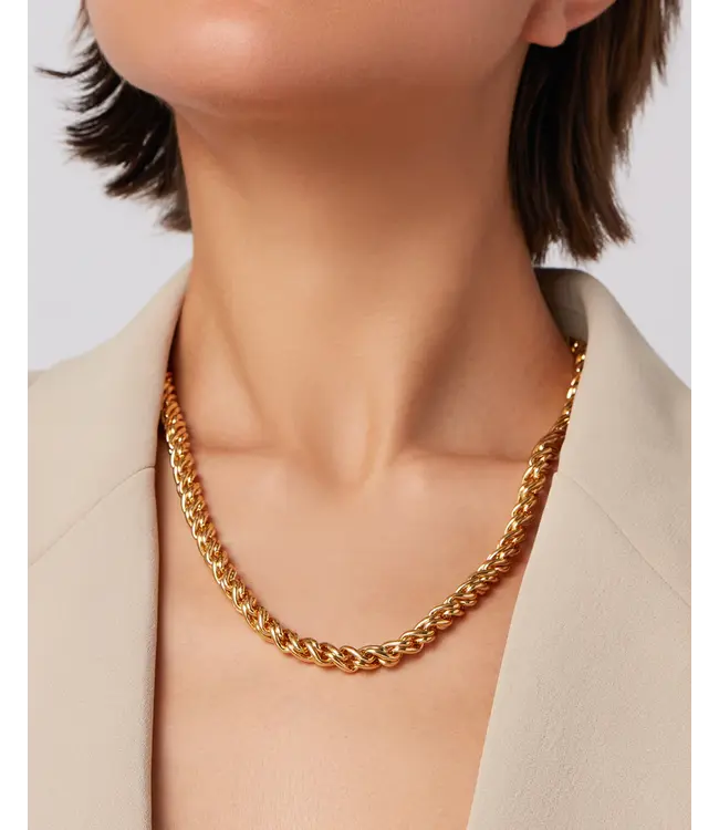 At a glance, this braided chain looks like curls of gold. It's the perfect anchor for your neck stack—or, wear it solo for a "new nonna" moment. Finished in high-polish gold.
