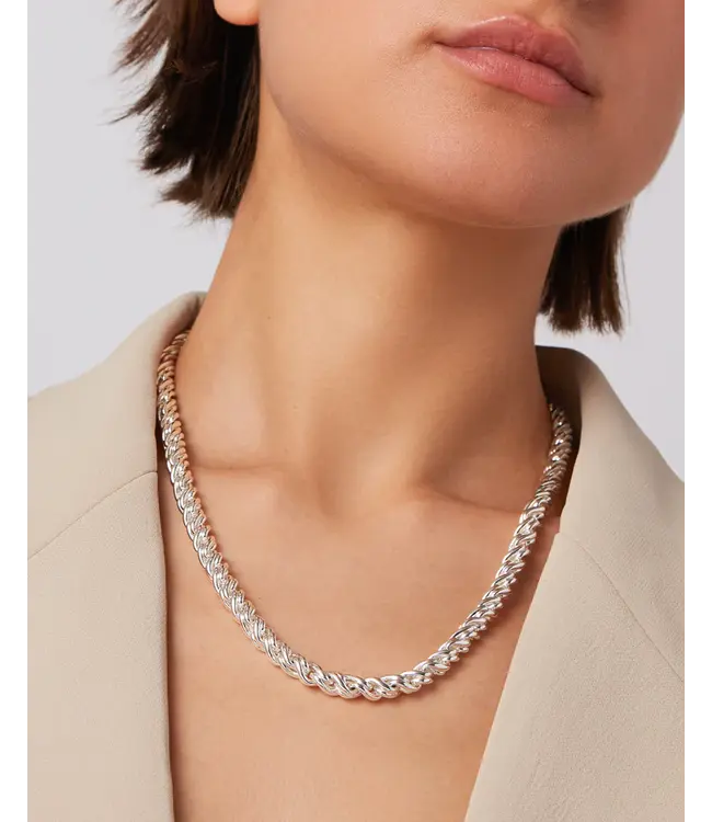 At a glance, this braided chain looks like curls of silver. It's the perfect anchor for your neck stack—or, wear it solo for a "new nonna" moment. Finished in high-polish silver.