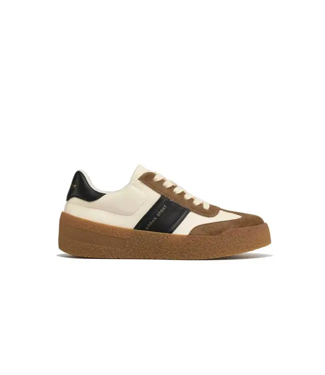 Step into effortless cool with the OLIVE sneaker. Featuring a sleek off-white leather and suede upper, a contrasting black side panel, and a chunky gum sole, this sneaker strikes the perfect balance between retro and modern. The lace-up design ensures a secure fit, while the cushioned footbed and soft lining deliver all-day comfort. Whether paired with jeans, joggers, or a casual dress, these sneakers add a sporty-chic finish to any look.