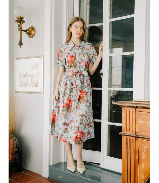 Love the Label’s take on a classic shirt dress, featuring a fully functional button up placket with delicate shell buttons. It has a slight dropped ruffled waist with soft gathering for the perfect amount of fullness. And a belted tie to create a flattering waist hugging silhouette.