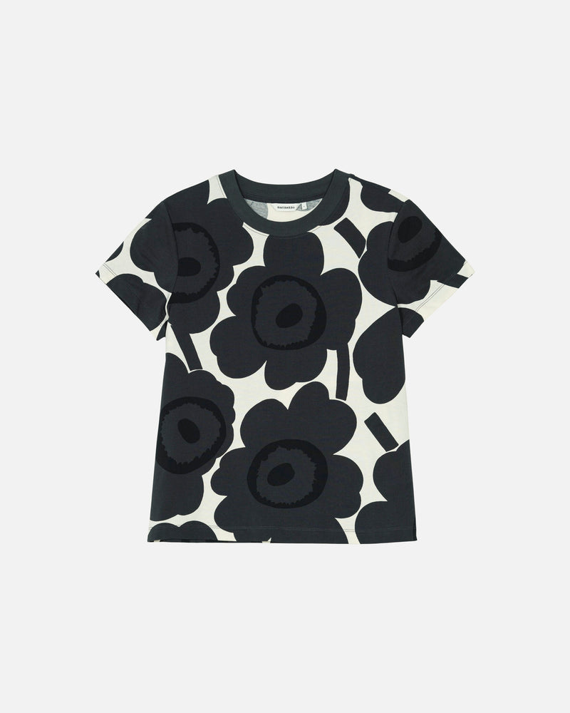 Create an accountThe Heleys top is made of cotton jersey, and it has a slim, straight fit. The short-sleeved top features the Unikko pattern and an O-neck with a rib finish.