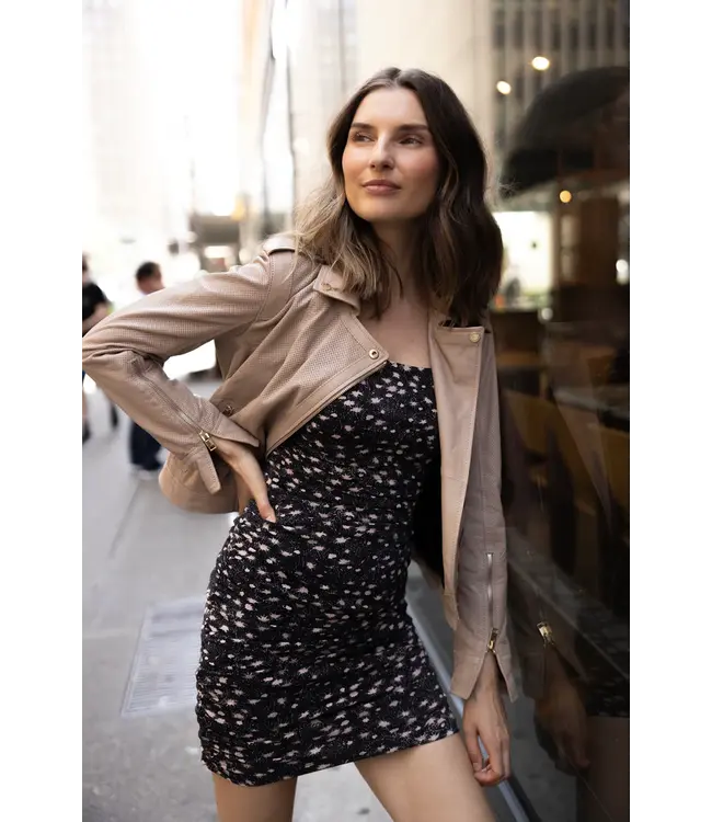 The Sinta leather jacket offers a subtle yet sophisticated style with its perforated design. Made with high-quality lambskin leather, this jacket provides excellent breathability and comfort. Elevate your wardrobe and stay cool in style.