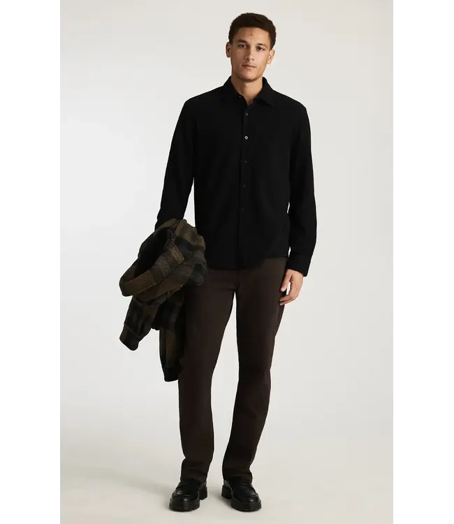 This easygoing button-up features a straight fit, pointed collar, and curved hem for versatile style.