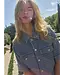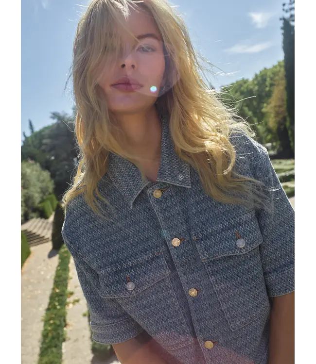 A contemporary twist on the classic denim jacket. Designed in a relaxed fit with short sleeves and a classic collar, this jacket features beautiful button fastening and front pockets for a casual yet refined look. The textured denim fabric adds a unique touch. Style it with matching jeans or layered over a dress for effortless cool.