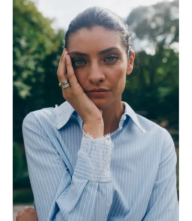 This striped shirt is the perfect balance of classic and feminine. Designed in a relaxed fit with button closure and a sharp collar, it features delicate lace details at the collar and cuffs for a refined touch. Crafted from a soft blend of organic and conventional cotton, making it both comfortable and elegant - perfect for pairing with tailored trousers or denim for an effortless everyday look.