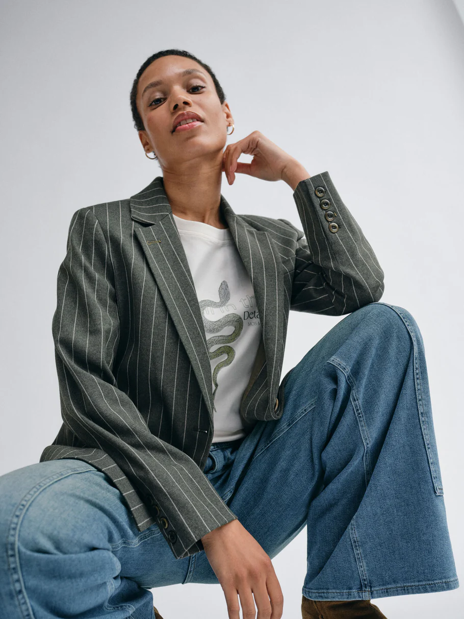 Create an accountThis regular-fit blazer features a classic collar, long sleeves, and a timeless striped pattern, finished with a single-breasted button closure for a sharp, refined look. Crafted from a structured fabric blend with added stretch, it effortlessly pairs with the matching trousers for a modern tailoring look.