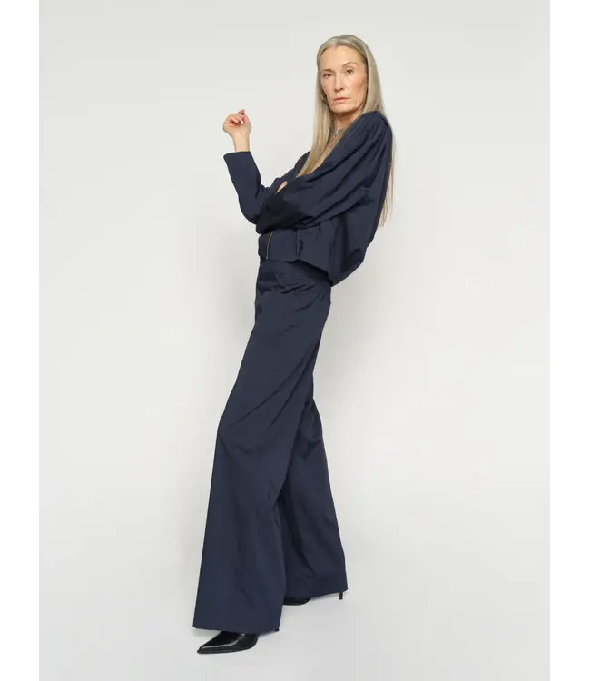 Tailored from a recycled polyester blend, these pants are designed in a regular fit with mid-rise and wide legs that create a flattering, elegant silhouette. The subtle stripe texture adds depth and refinement. Pair them with the matching Elvia Jacket for a coordinated and effortlessly chic look.