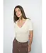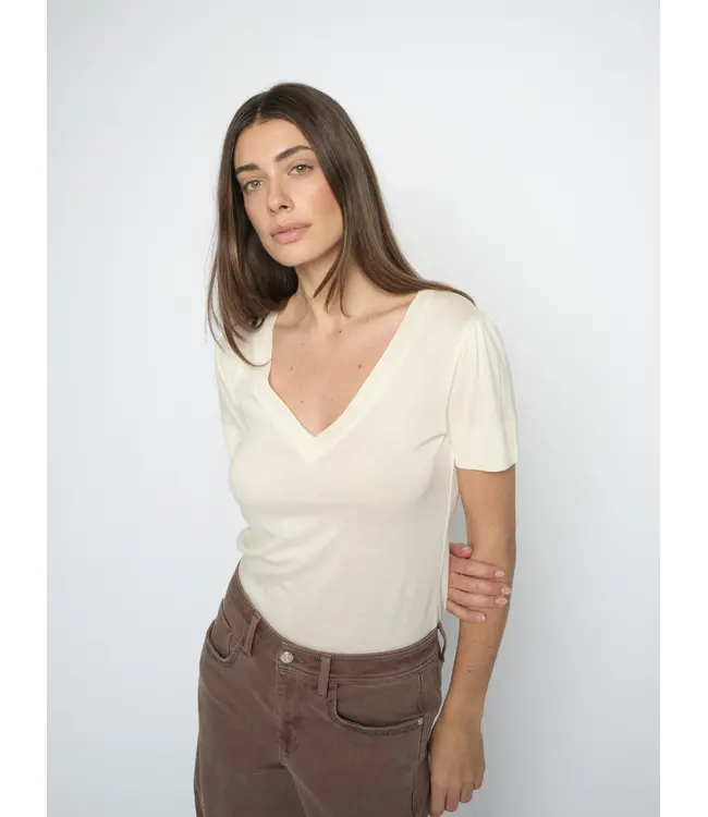 This soft tee has an elegant V-neckline and a lightly fitted shape for a feminine, relaxed feel. The smooth quality drapes beautifully and feels comfortable against the skin, making it ideal for everyday wear. Style it with jeans for a casual look or under a blazer for a more refined outfit.