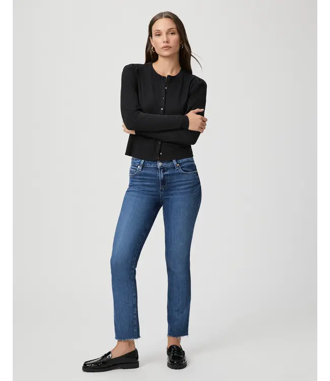 This mid-rise straight leg has a long and lean silhouette that finishes at the ankle with a raw hem. This pair is cut from PAIGE VINTAGE denim in a vintage-inspired medium wash with natural fading. PAIGE VINTAGE takes all of the work out of breaking in your favorite pair of vintage jeans. We've combined the comfort of stretch with everything you love about authentic vintage denim to create super soft jeans that feel perfectly lived-in from the very first wear.