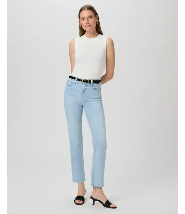 An effortlessly cool and super flattering high-rise straight leg that belongs in every wardrobe. This pair is crafted from TRANSCEND VINTAGE denim and comes in a lived-in light blue wash with a raw hem. This style has the look of authentic vintage denim but is incredibly comfortable with plenty of stretch and recovery