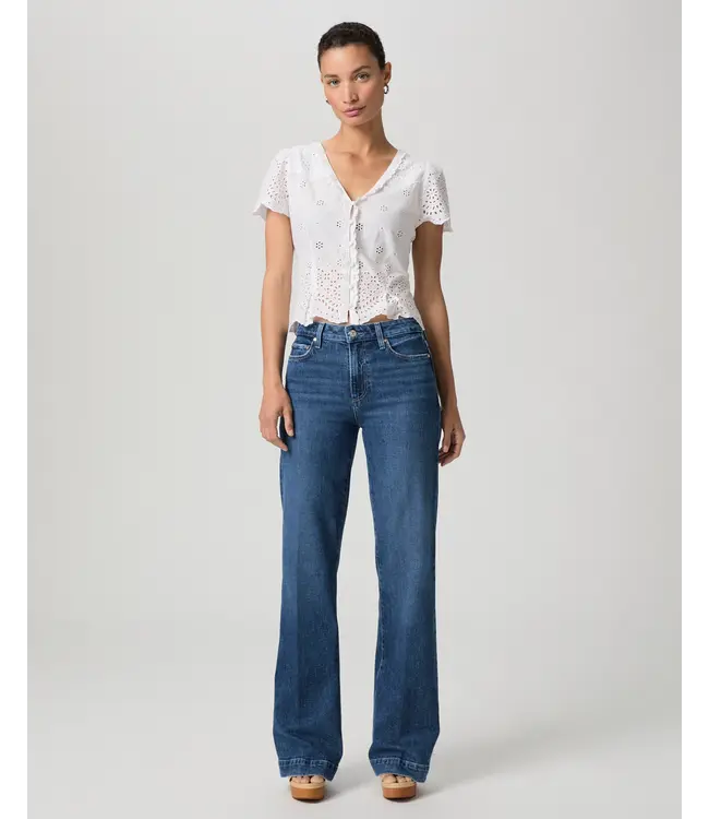 This 90s-inspired sleek wide leg is designed with a high-rise and a flattering bow leg silhouette with a 32" inseam that pairs perfectly with flats and also works well with a heel for petite women. This style is cut from PAIGE VINTAGE denim in a clean and classic dark vintage-inspired wash. PAIGE VINTAGE takes all the work out of breaking in your favorite pair of vintage jeans. We've combined the comfort of stretch with everything you love about authentic vintage denim to create super soft jeans that feel perfectly lived-in from the very first wear.