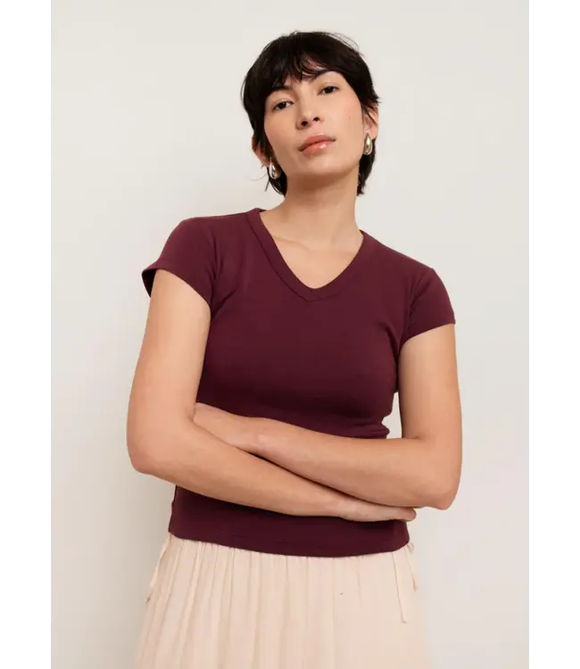 Consider this the elevated essential you didn’t know you needed. The Suzy High V-Neck features a clean, refined neckline with subtle cap sleeves and a slightly more fitted silhouette for a polished, close-to-body look. A center-back seam adds quiet structure and an intentional finish. Think of it as the Lydia Tank’s sophisticated sister—equally effortless.