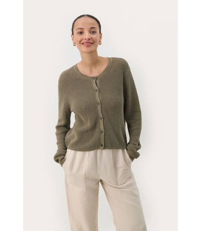 This classic knitted cardigan is a timeless wardrobe essential. Made from a soft and breathable fabric, it features a round neckline, button closure, and ribbed cuffs for a comfortable fit. Perfect for layering over a dress or styling with jeans for a cozy yet stylish look.