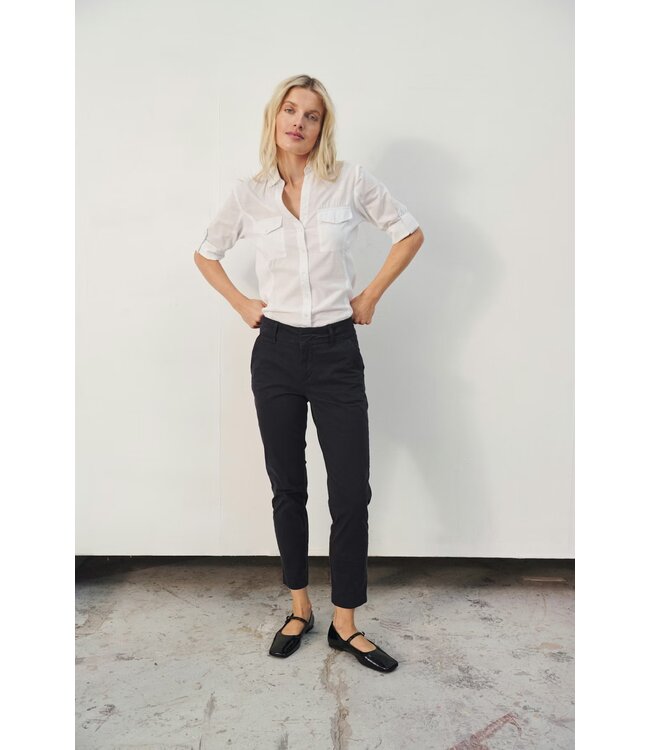 The model is 174 cm tall and wears a size 36. These trousers in a soft cotton blend feature a straight fit and a clean silhouette, making them easy to style. With belt loops and a concealed closure, they’re a versatile choice for both work and casual days. Pair them with a shirt or T-shirt for a relaxed, stylish look.