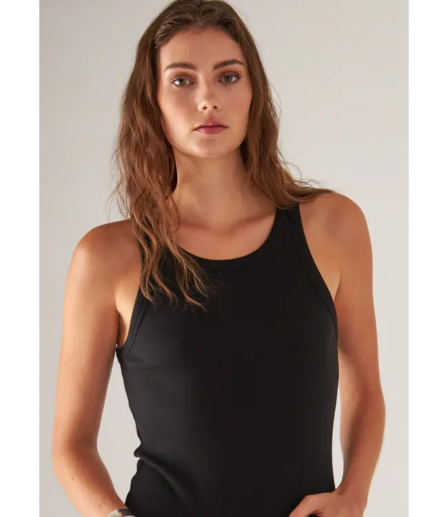 OUR HIGH NECK RIB TANK IS MADE FROM OUR NEW LUXURIOUSLY SOFT PERUVIAN PIMA COTTON-BLEND. THIS ULTRA FLATTERING SILHOUTTE IS DESIGNED FOR A SLIM FIT FEATURING A HIGH CREW NECK AND CURVED STRAPS. STYLE WITH A HIGH-RISE PANT OR YOUR FAVOURITE DENIM FOR AN EFFORTLESSLY CHIC LOOK.