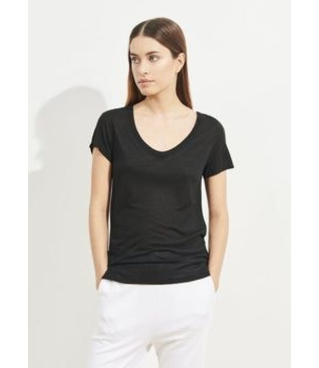Iconic v neck t-shirt made from Peruvian pima cotton stretch fabric. The fabric is pre-shrunk prior to construction, minimizing shrinkage and offering long lasting performance. It has a luxurious silky hand feel and the added feature of stretch for extra comfort. This is a highly versatile item and ideal for layering.