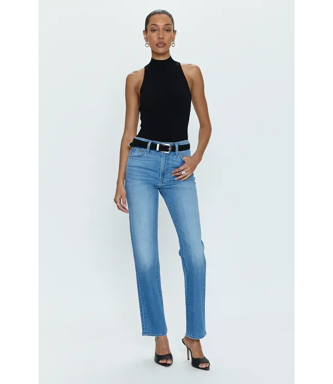 Create an accountClassic slim straight silhouette with an ultra-flattering mid rise, crafted from our comfort stretch denim. Offered in a seasonless medium blue wash with just the right amount of lived-in fading and light whiskering.