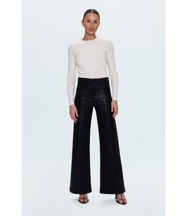 The best-selling wide leg that commands the room. Lana sits at a high rise with an ultra wide leg silhouette and full-length 33" inseam that feels effortlessly dramatic. The ultra wide opening creates maximum impact while the relaxed fit flows beautifully. Crafted from our signature comfort stretch denim in Coated Noir, a rich black finish with luxurious coated texture.