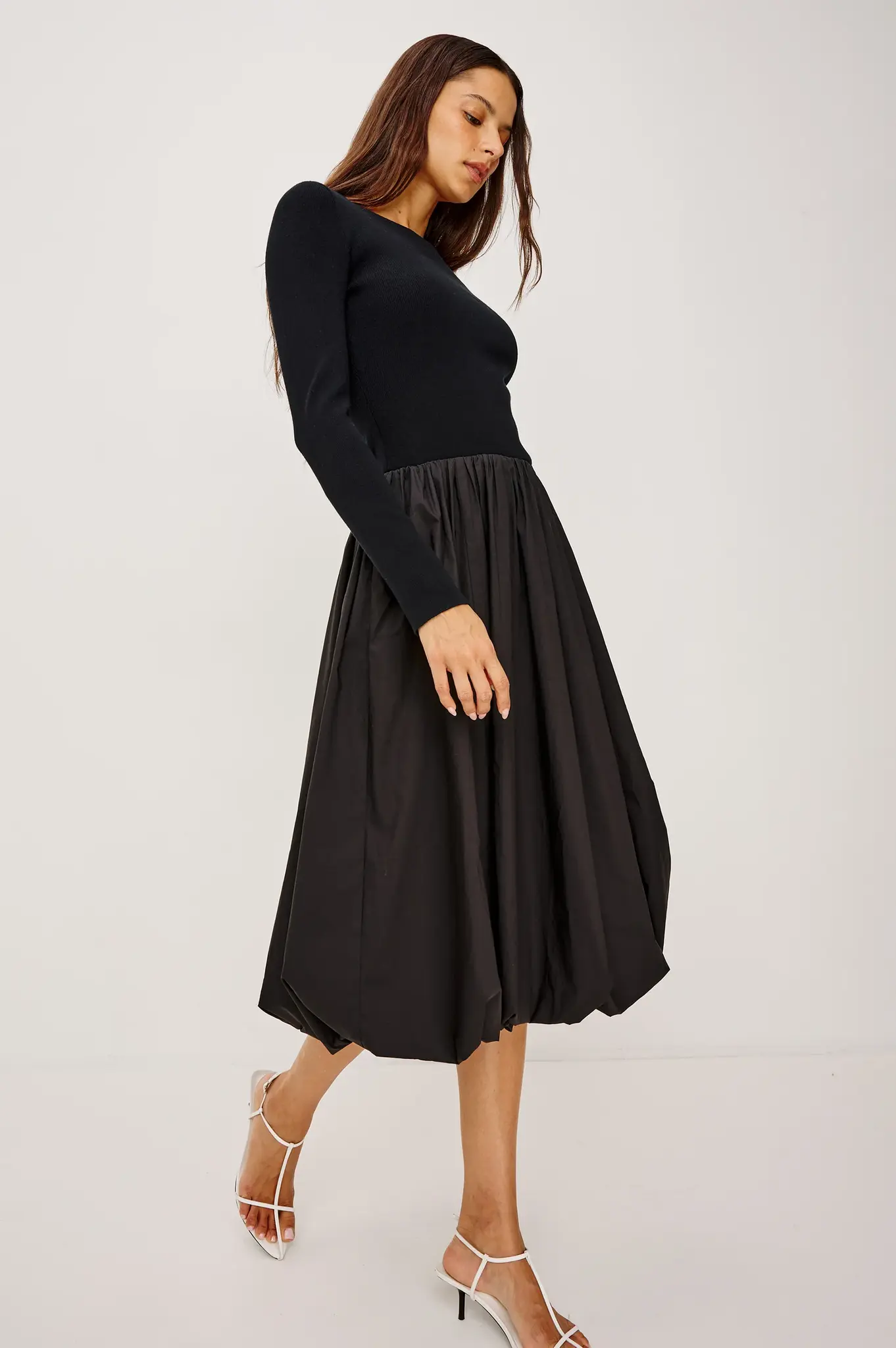 Create an accountA case study in class, the Romana makes a refined statement with its classic scoop neckline, fitted body, and long sleeves. Its drop waistline flows into a bubble hem skirt, perfectly balancing playfulness and elegance.