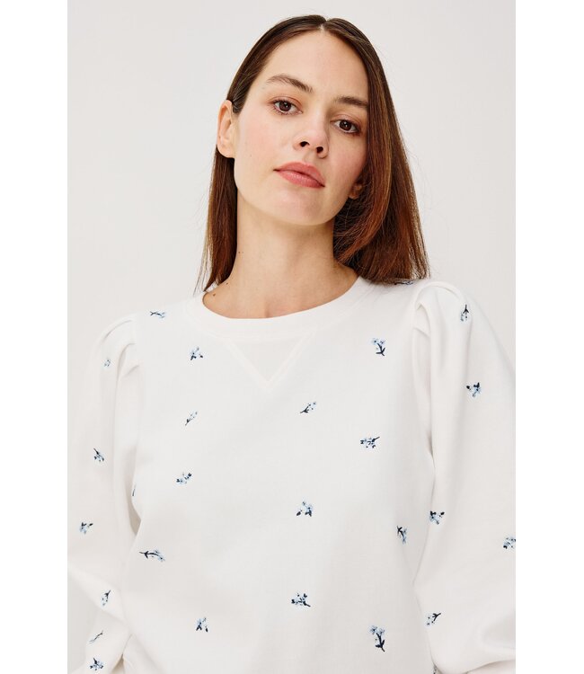 Feminine ease for every day, the Tiffany sweatshirt features floral embroidery in soft French terry, with long puff sleeves and a relaxed, boxy fit. 100% Cotton Imported.