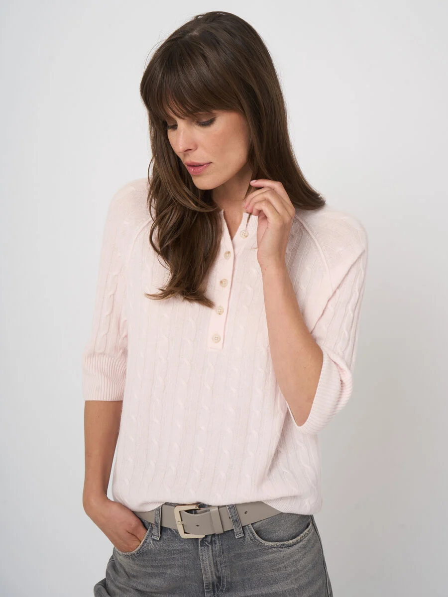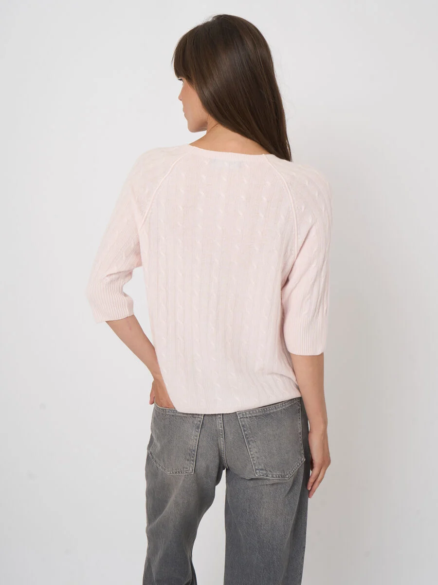Create an accountSpun from 100% GOTS-certified organic cashmere by REPEAT cashmere, the soft, lightweight fine knit showcases a delicate cable stitch with ribbed borders. A relaxed, straight-fit sweater with short raglan sleeves and decorative outside linking. Effortless for work-to-weekend, it layers neatly over tees or under tailoring.