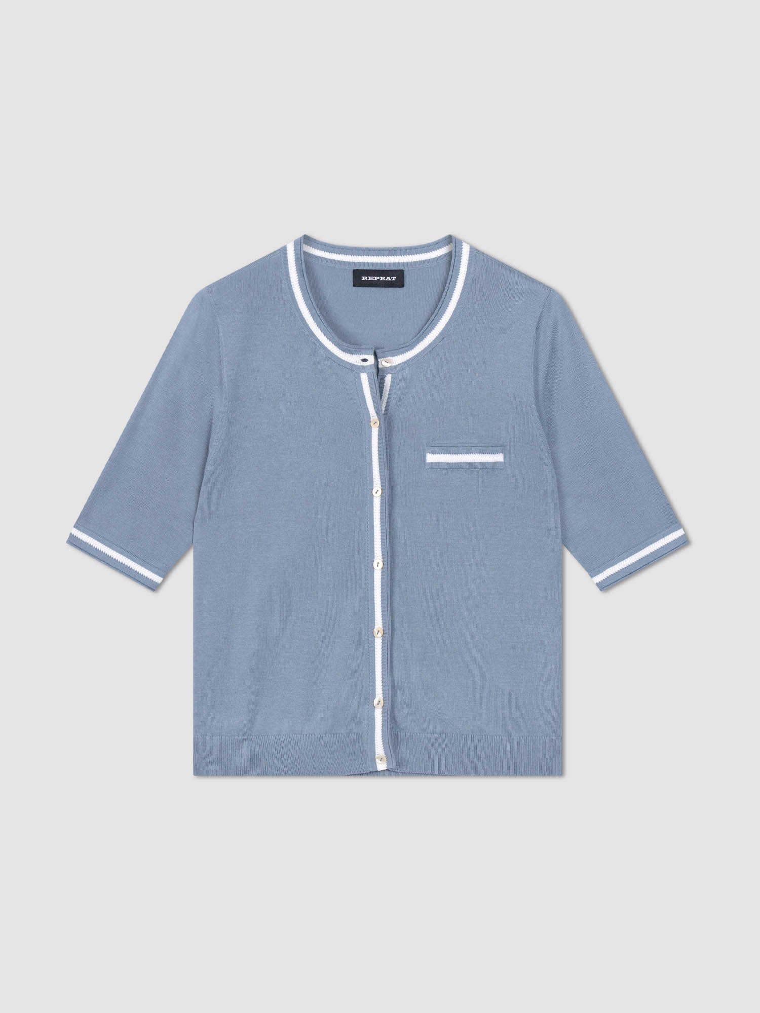 Create an accountFrom REPEAT cashmere, this cotton-viscose cardi feels soft against the skin, crafted in a fine, lightweight knit with subtle ribbing and contrast-stripe trims. The cardigan has a slim, body-hugging, contoured cut with a ribbed crew neck and ribbed hem. Perfect for everyday polish—wear solo or layer.