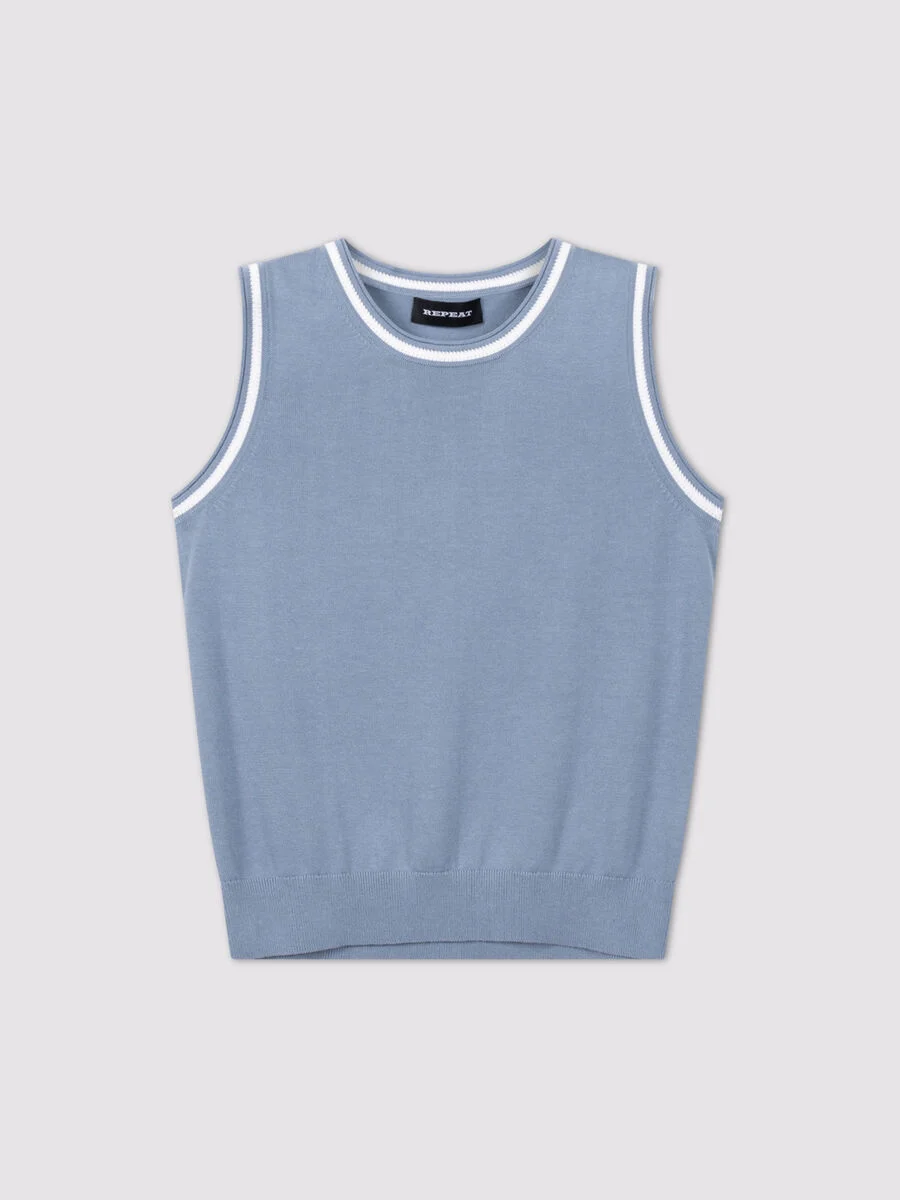 Create an accountFrom REPEAT cashmere, this cotton-viscose vest feels soft against the skin, crafted in a fine, lightweight knit with subtle ribbing and contrast-stripe trims. The sleeveless, tank-top style has a slim, body-hugging, contoured cut with a ribbed crew neck and ribbed hem. Perfect for everyday polish—wear solo or layer under tailoring.