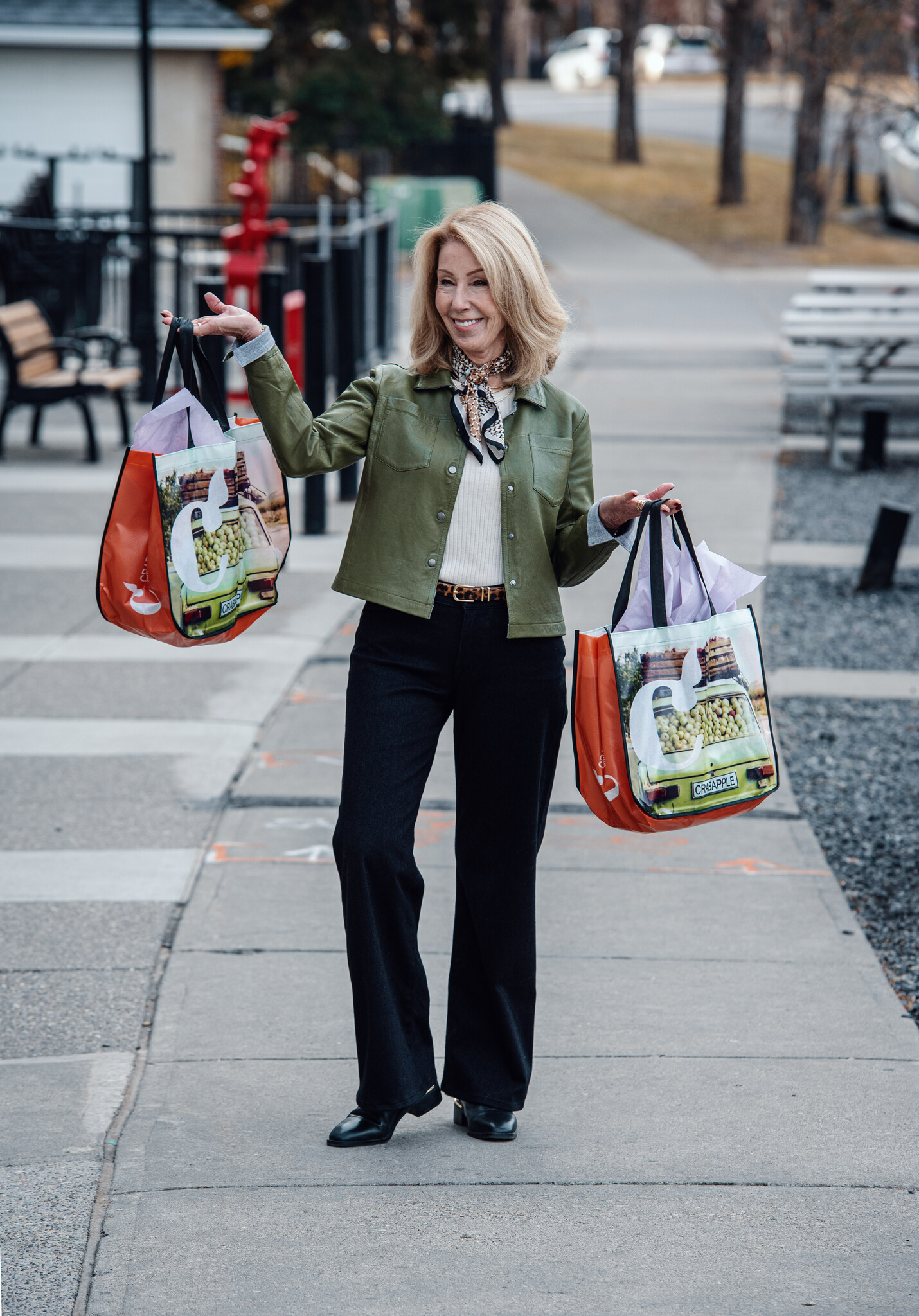 If it’s a crazy day ahead, I want to be comfortable. So jeans, t-shirt, and a cardigan. Sheri has me hooked on cashmere cardigans!