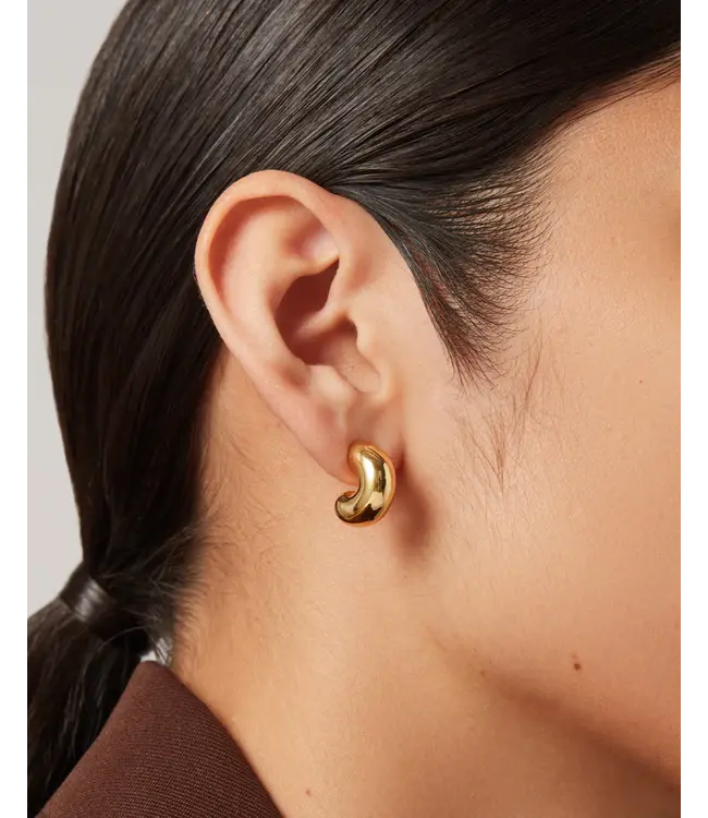 A tubular, chubby hoop with rounded ends and a custom JB ball backing. Finished in high-polish gold.