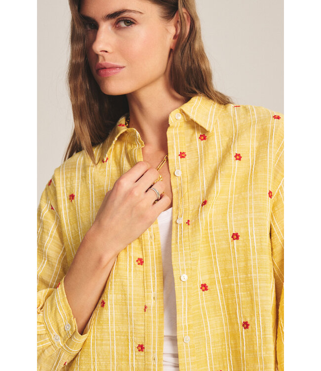 100% cotton embroidered button down blouse