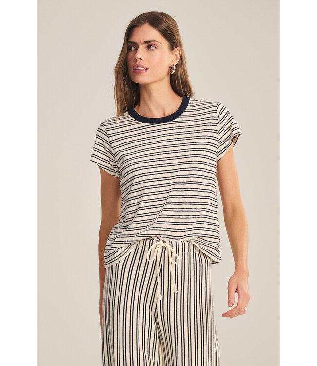 Striped crew neck tee.